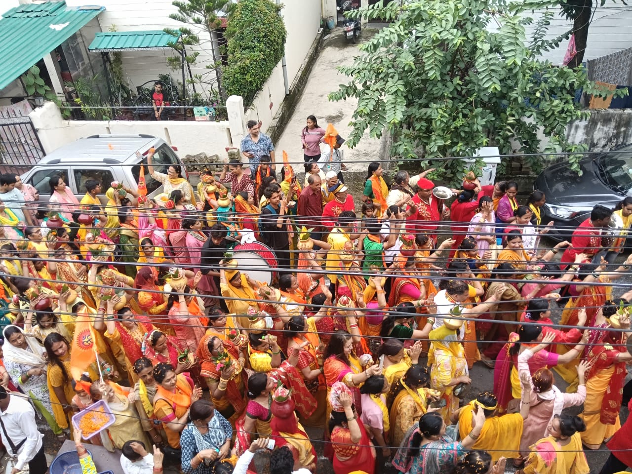 देहरादून- सिद्ध पीठ प्राचीन श्री शिव मंदिर, धर्मपुर चौक, देहरादून में आज प्रातः 10 बजे दिव्य भव्य कलश यात्रा मंदिर समिति और धर्मपुर क्षेत्र के भक्तों द्वारा निकाली गई। कलश यात्रा में 108 कलश देवियों द्वारा पंच प्रयाग से लाए गए जल को अपने मस्तक पर कलशों के माध्यम से धारण कर क्षेत्र को पवित्र किया गया। कलश यात्रा का क्षेत्र के भक्तगणों द्वारा जगह-जगह पुष्प वर्षा कर स्वागत किया गया। कलश यात्रा विशाल जन समूह में मंदिर से प्रारंभ होकर नेहरू कॉलोनी ए ब्लॉक, बी ब्लॉक, ओल्ड नेहरू कॉलोनी होते हुए डिस्पेंसरी रोड से हरिद्वार रोड होते हुए मंदिर पहुंची। तत्पश्चात, मंदिर समिति द्वारा शिव महापुराण पूजन एवं व्यास पीठ पूजन किया गया। व्यास जी के मुखारविंद द्वारा शिव महापुराण का रसपान भक्तगणों द्वारा किया गया। तत्पश्चात, अजयकांत विश्वकर्मा जी के परिवार द्वारा विशाल भंडारे का आयोजन किया गया, जिसमें सभी भक्तों ने प्रसाद ग्रहण किया।