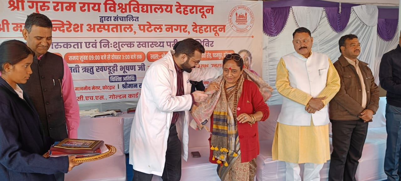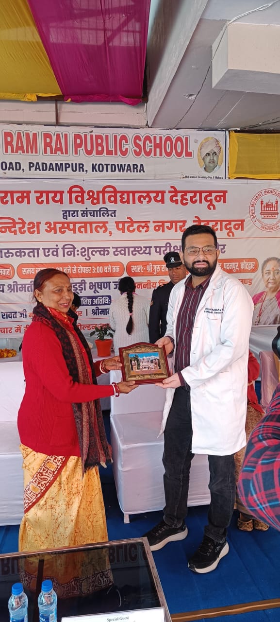 देहरादून। श्री गुरु राम राय विश्वविद्यालय एवम् श्री महंत इन्दिरेश अस्पताल, देहरादून के सौजन्य से श्री गुरु राम राय पब्लिक स्कूल, देवी रोड, कोटद्वार में मंगलवार, 02 दिसम्बर 2025 को कैंसर जागरूकता एवं निःशुल्क स्वास्थ्य परीक्षण शिविर का सफल आयोजन किया गया। इस अवसर पर 1226 मरीजों ने शिविर का लाभ उठाया। शिविर में अस्पताल के विशेषज्ञ चिकित्सकों ने स्वास्थ्य परामर्श दिया तथा रोगियों को निःशुल्क दवाइयाँ वितरित की गईं।